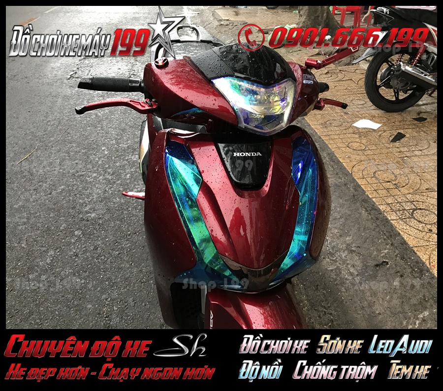 Kèm với các đồ chơi thoả mãn nhu cầu làm đẹp xe SH 2017: Mâm 5 cây độ, Mâm Kuni màu sắc hầm hố nhìn cứng cáp, Pô xe độ Graturismo, Bao tay – Kính chiếu hậu– Tay thắng siêu đẹp, Thắng đĩa độ, Mặt nạ độ cho riêng dòng xe sh,…. Thì còn một số đồ trang trí mang giá trị thẩm mỹ cực cao mà giá lắp ráp lại vừa tầm Biker đến mức có khi bạn nghe đến mức giá lại liên tưởng đến nó là phụ tùng không tốt, làm gì thích hợp được với chiếc xe SH 2017 sang chảnh của mình cơ chứ! Chưa hẳn là thế, Cửa hàng199 xin được đưa ra với anh em một loại hình trang trí xe đang làm điên đảo bao bạn trong các dòng xe SH 2017 đời mới là dán choá đèn Titan Sh 2017. Dán choá đèn Titan Sh 2017 có các màu tối nhẹ nhàng như đất nung, titan uranium, thạch anh titan khói đậm,… đến các màu sáng nổi bật như titan khói nhạt, xanh pepsi, cam nhạt, nắng ban mai, xanh lục bảo, titan dưa gang,…